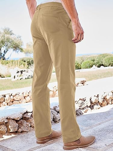 PLEPAN Men’s Chino Pants Khaki – Stretch Waist Slim Fit Casual Trousers for Work