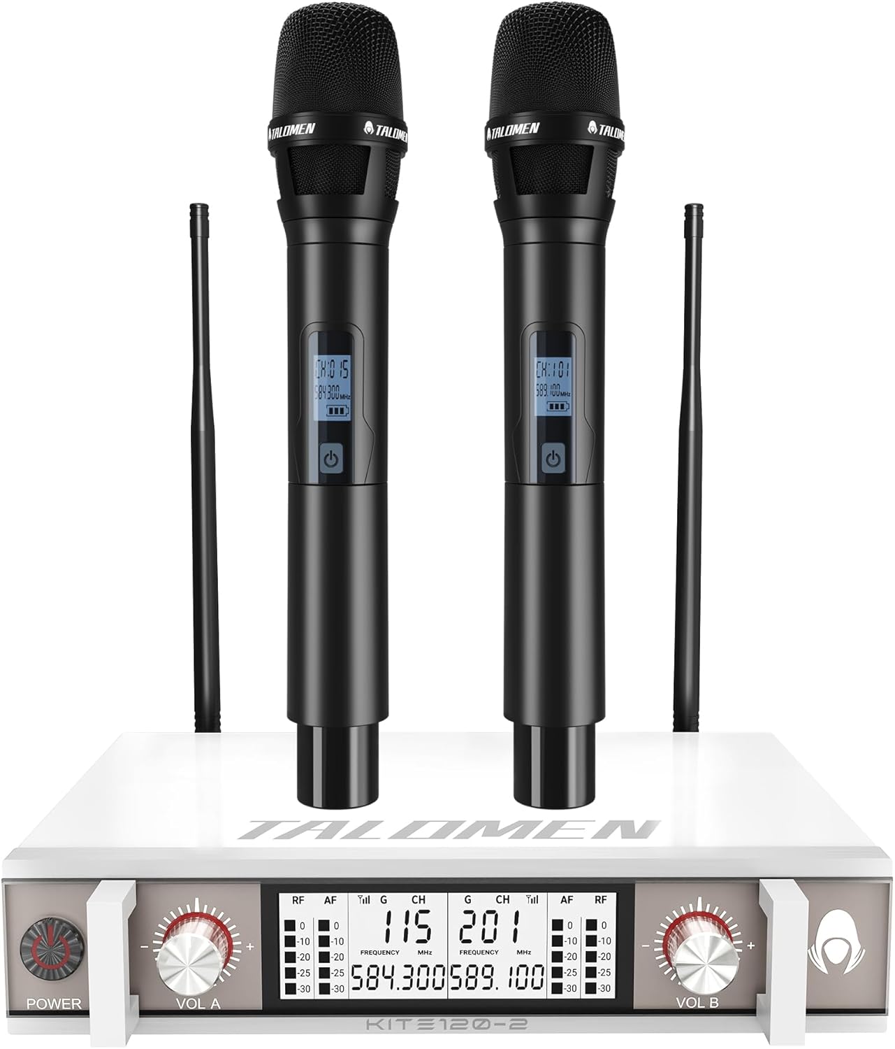 Wireless Microphone System, Metal UHF Handheld Microphones Cordless Dynamic Mic Set